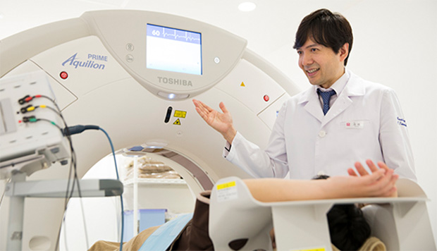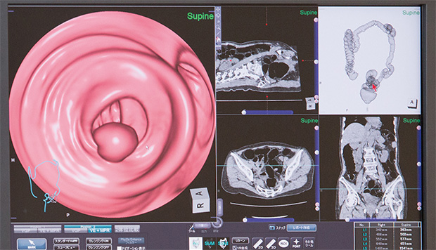 身体に負担の少ない検査を採用たとえば、大腸検査は簡易的な便潜血や大量の下剤を服用する大腸内視鏡ではなく、「大腸3D-CT」を採用しています。内視鏡検査と比べ下剤は1/10と少量で、約20分で検査を終えることができます。