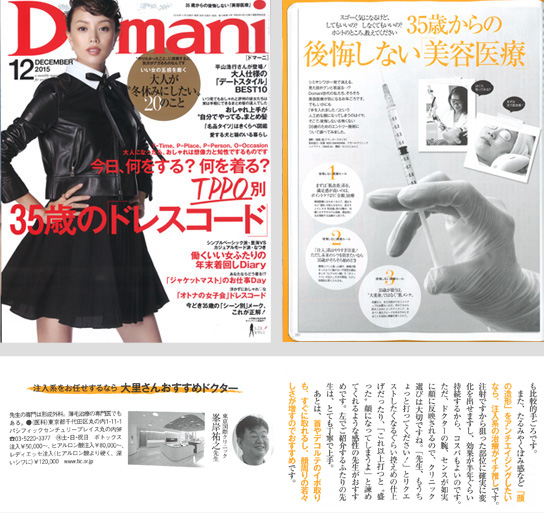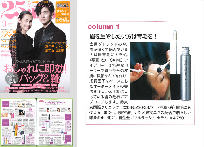 「日経ヘルス」7月号の『老けないカラダは柔らかさが100%』特集で形成外科の峯岸祐之医師が眉毛のメカニズムについて取材協力をさせていただきました。
